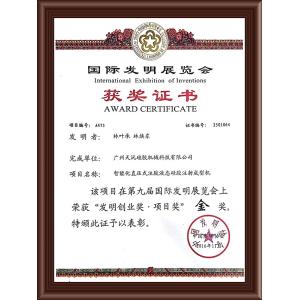 Passed the certification of ISO9001:2005 ,CE, the company also has been certified as “High-tech Enterprises of Guangzhou Province”, we have more than 60 patents,which include 12 invention patents.Also our machine got the International Technical Gold Medal.